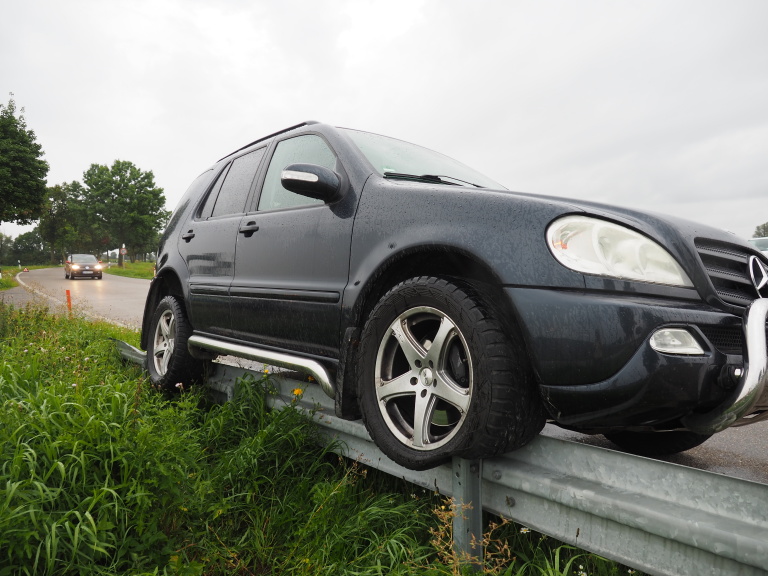Am 31.08.2017, gegen 11.00 Uhr, bog ein 60-jähriger Pkw-Fahrer von der Königsmühle kommend nach links in die Kreisstraße DON 28 ein. Er übersah einen aus Auchsesheim kommenden in Richtung Mertingen fahrenden Pkw und nahm diesem die Vorfahrt. Um einen Zusammenstoß zu verhindern wich der 33-jährige Fahrer des vorfahrtsberechtigen Pkw nach rechts aus und fuhr auf die an der Unfallstelle beginnende Leitplanke.