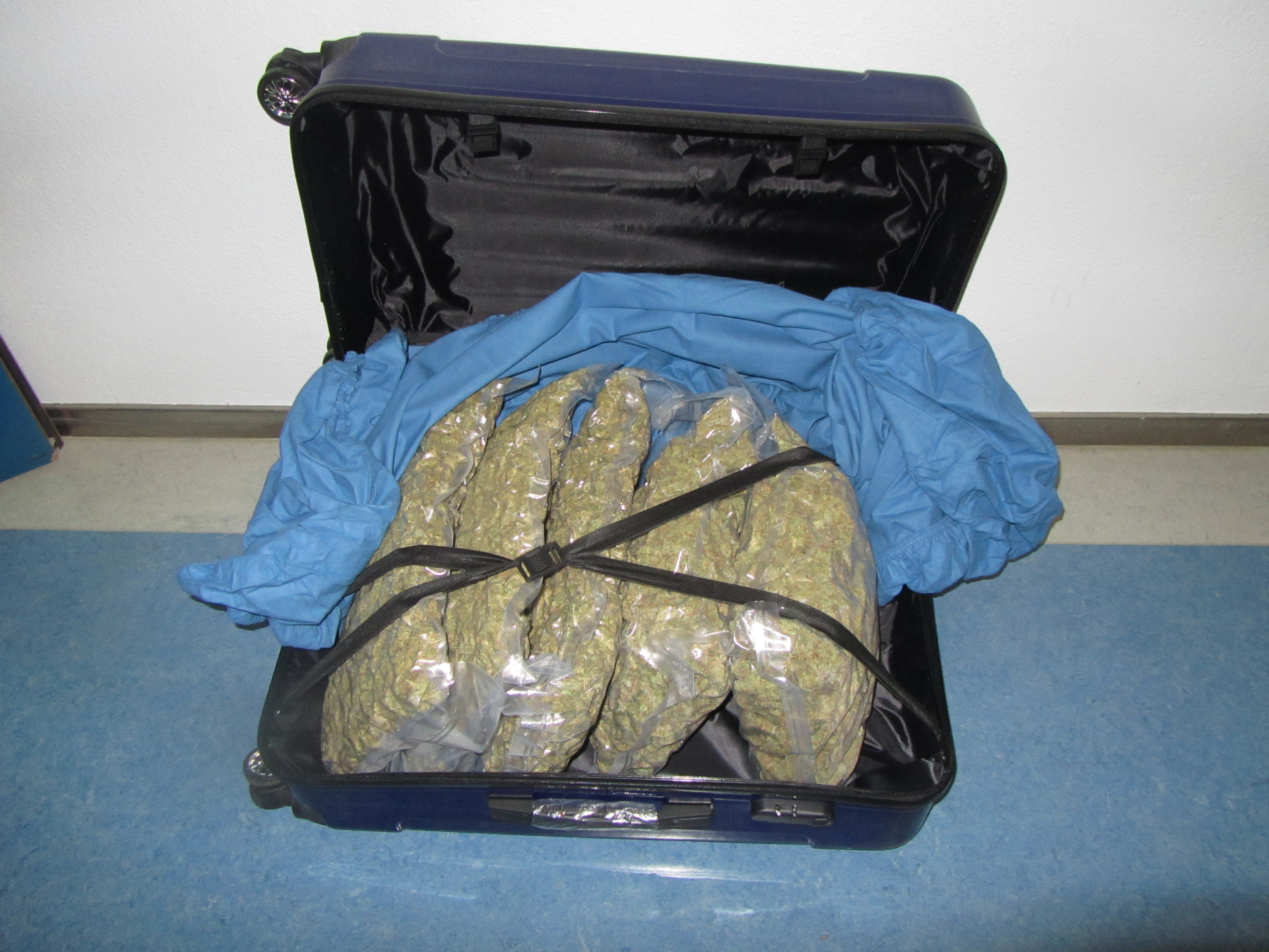 Am 27.11.2017 kontrollierten Schleierfahnder der Verkehrspolizeiinspektion Augsburg einen im internationalen Reiseverkehr eingesetzten Bus am Zentralen Omnibusbahnhof in der Biberbachstraße. Im Rahmen der Personenkontrollen im Bus fiel den Polizeibeamten ein 28-jähriger Mann aus Nordrhein-Westfalen auf, der bei seiner Befragung zum Reiseziel sowie zum mitgeführten Gepäck zusehends nervöser wurde. Warum dem so war sollte sich bald herausstellen. Nachdem die Fahnder in der Jackentasche des Mannes ein kleineres Stück Haschisch sowie ein Tierabwehrspray fanden, durchsuchten die Beamten natürlich auch die beiden mitgeführten Koffer des 28-Jährigen. Und dann zeigte sich letztlich auch der Grund für die Nervosität des Fahrgastes: In den Koffern befanden sich neben weiterem Haschisch im dreistelligen Grammbereich etwa 10 Kilogramm Marihuana! Das Marihuana war in Einzelportionen von jeweils etwa einem Kilogramm aufgeteilt und in Plastikfolien eingeschweißt. Die Fahrt des 28-Jährigen war somit in Augsburg beendet. Er wurde vor Ort festgenommen. Auf Antrag der Staatsanwaltschaft Augsburg erließ ein Ermittlungsrichter am Amtsgericht Augsburg am 28.11.2017 Haftbefehl wegen des dringenden Verdachts eines Verbrechens nach dem Betäubungsmittelgesetzt und setzte diesen in Vollzug. Die weiteren Ermittlungen zum Tatgeschehen, v.a. zur Herkunft des Marihuanas, hat die Kriminalpolizeiinspektion Augsburg übernommen.