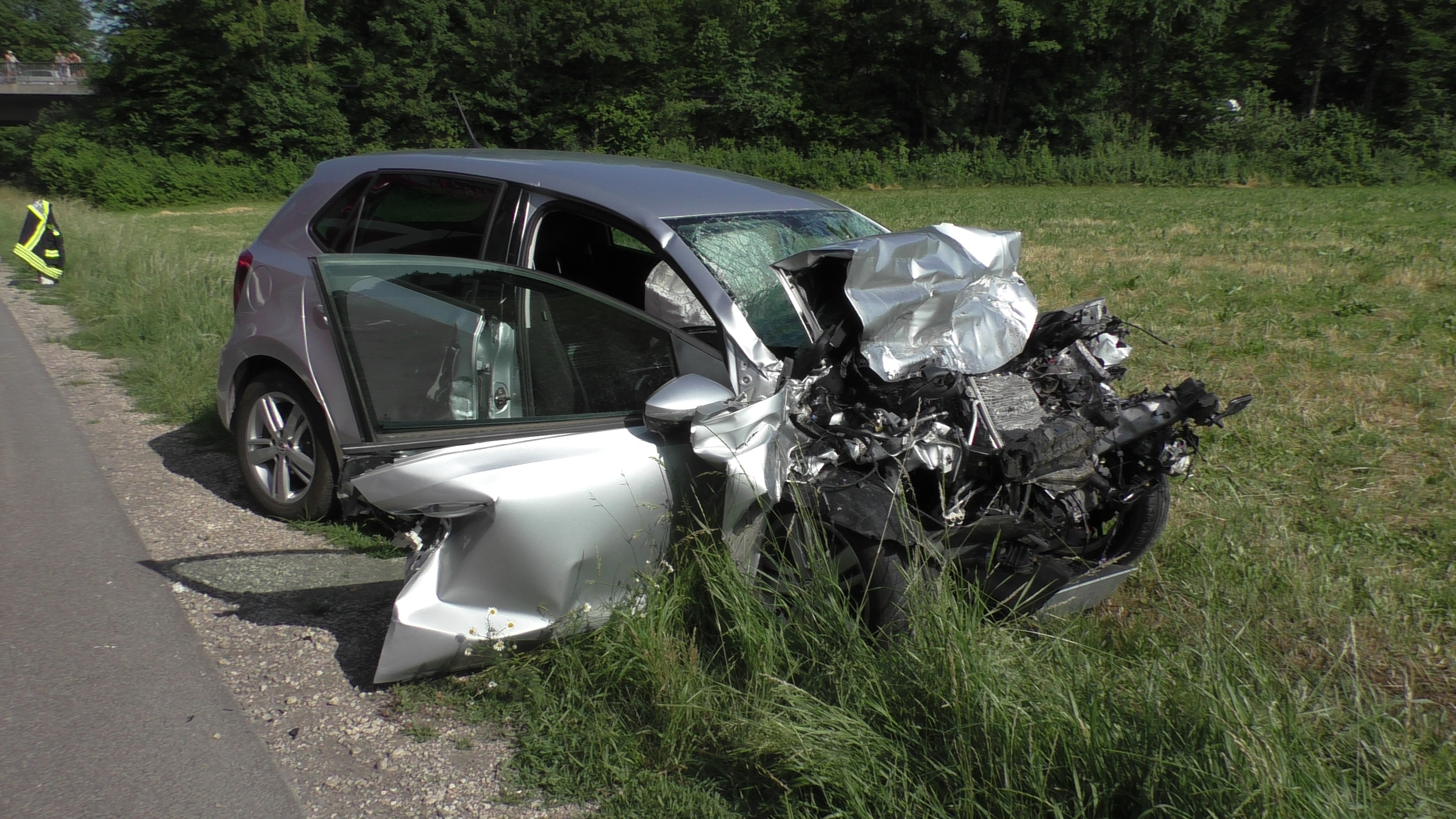 Gestern (04.06.2018), gegen 16:30 Uhr prallte ein Pkw frontal gegen einen Lkw. Der Unfall ereignete sich auf der B 16 in unmittelbarer Nähe der Anschlussstelle Rain/West. Ein 19-jähriger Pkw-Fahrer geriet auf die Gegenfahrspur und prallte ungebremst in einen entgegenkommenden Lkw. Der 44-jährige Lkw-Fahrer konnte mit einer Vollbremsung zwar die Aufprallgeschwindigkeit verringern, jedoch nicht den Zusammenstoß verhindern. Der junge Autofahrer wurde mit Knochenbrüchen und inneren Verletzungen in die Donau-Ries-Klinik zur ärztlichen Behandlung gefahren. Der Lkw-Fahrer blieb unverletzt. An dem Pkw entstand wirtschaftlicher Totalschaden in Höhe von ca. 10.000 €, am Lkw liegt der Schaden bei ca. 20.000 €. Beide Fahrzeuge mussten abgeschleppt werden. Die FFW Rain war mit ca. 20 Kräften zur Verkehrssicherung an der Unfallstelle.