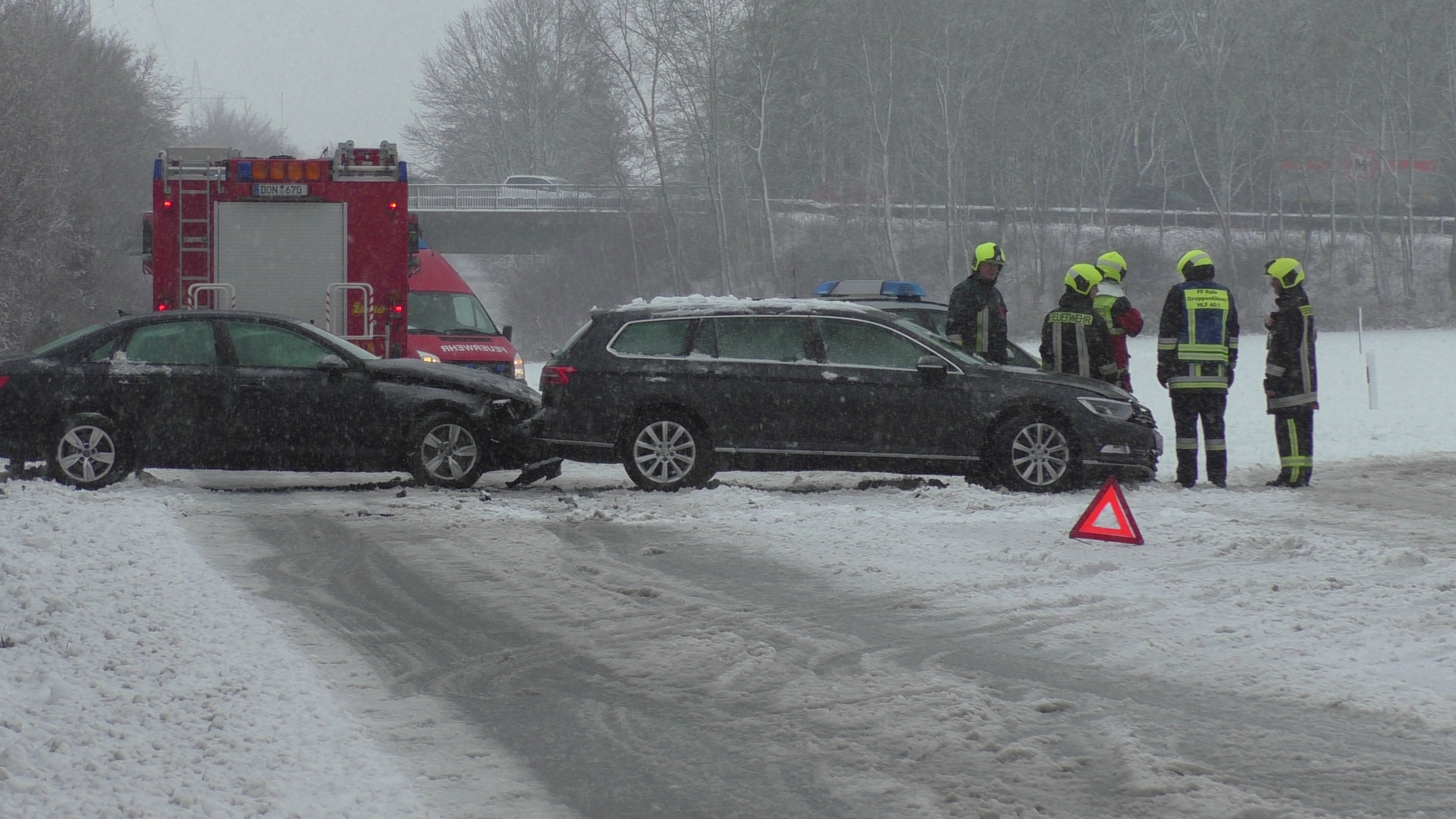 Am 05.01.19, gegen 09.40 h, kommt eine 39-jährige mit ihrem Fahrzeug aufgrund überhöhter Geschwindigkeit bei Schneeglätte in einer Rechtskurve in Holzheim, Baarer Straße, ins Rutschen, gerät in den Gegenverkehr. Es kommt zum Zusammenstoß mit einem Pkw, der einen Hänger mitführt. Es handelt sich um ein Fahrschulgespann, dass von einem 18-jährigen gefahren wurde. Der 43-jährige Fahrlehrer saß auf dem Beifahrersitz. Es entstand ein Gesamtsachschaden von ca. 13.000 Euro. Verletzt wurde niemand.