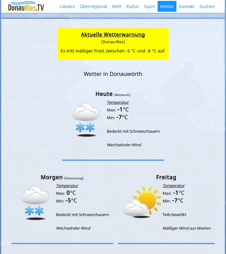 Unwetterwarnungen und Wettervorhersage auf DonauRies.TV