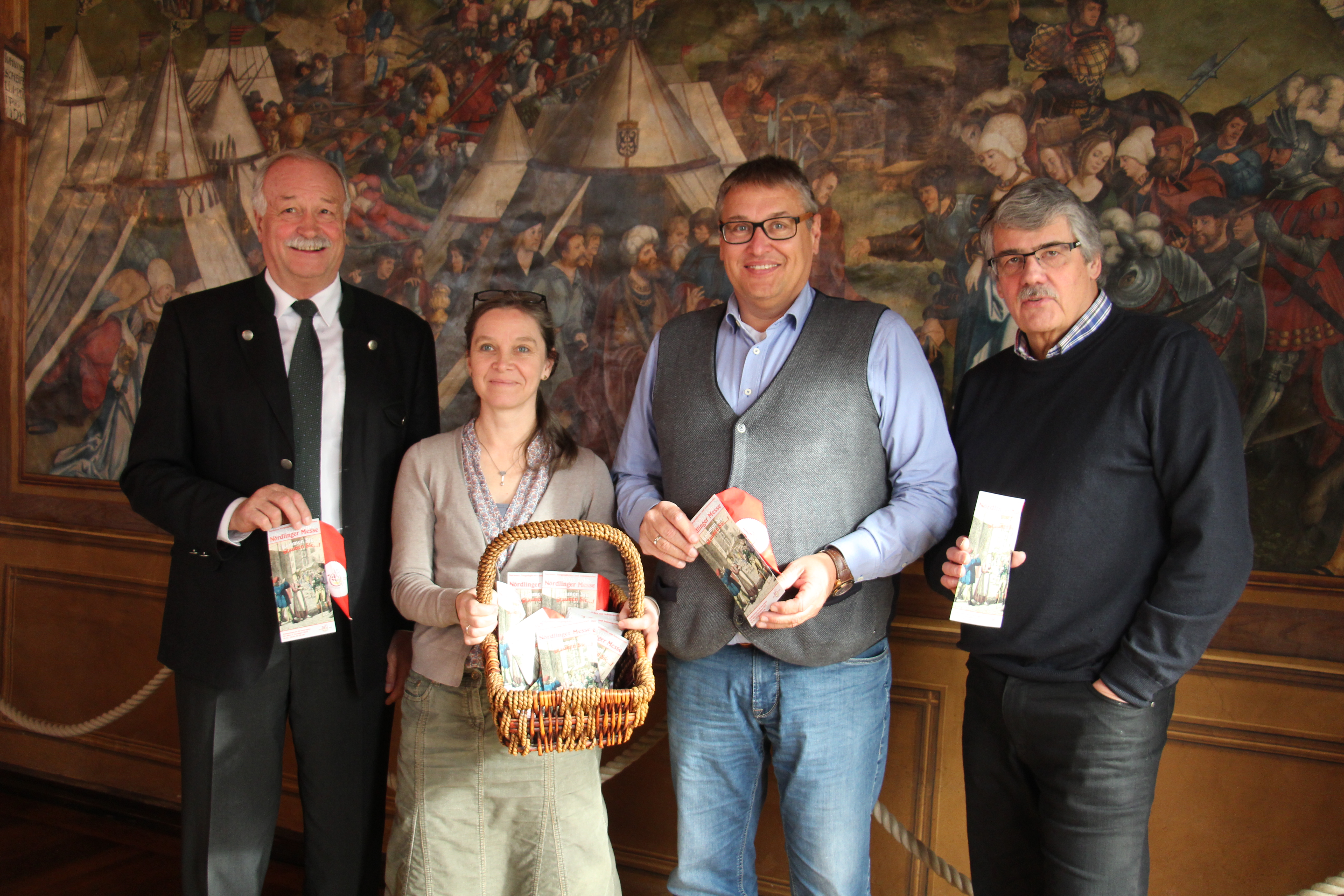 „Last but not least“ erscheint zum Jubiläum das Festbuch „800 Jahre Mess‘“, das in drei Teile aufgegliedert sein wird, wie Stadtarchivar Dr. Wilfried Sponsel erklärte. Der erste Teil widmet sich wissenschaftlichen Aufsätzen zur Messe mit Bebilderung und zeigt die Urkunde der erstmaligen Erwähnung von 1219. Die Urkunde wird im Staatsarchiv in Nürnberg aufbewahrt. Im zweiten Teil geht es um die Mess‘ in der Altstadt mit wunderbaren Texten aus den damaligen Zeitungen, Bildern und vielem unveröffentlichtem Bildmaterial, zur Verfügung gestellt vom Nördlinger Fotohaus Hirsch. Der dritte Teil schließt dann mit aktuellen Bildern von der Mess‘ auf der Kaiserwiese, der neuen Verbraucherausstellung, die seit 1985 die Mess‘ ergänzt und Geschichten rund um das größte Volksfest in Nordschwaben. „Das Buch wird rechtzeitig zur Nördlinger Mess‘ erscheinen“, führte Wilfried Sponsel weiter aus. Oberbürgermeister Faul zeigte sich sehr angetan von den Vorbereitungsarbeiten und vor allem von den geplanten Ausstellungen sowie Aktionen zum wirklich einmaligen Jubiläum „800 Jahre Nördlinger Messe“ und freute sich bereits jetzt auf die schönste Jahreszeit in Nördlingen, wenn es nach Pfingsten „Pfingstwoch’aus, Messwoch‘ ein“ diesmal schon bereits ab Freitag, 21. Juni 2019 zum Jubiläum auf die Kaiserwiese geht.