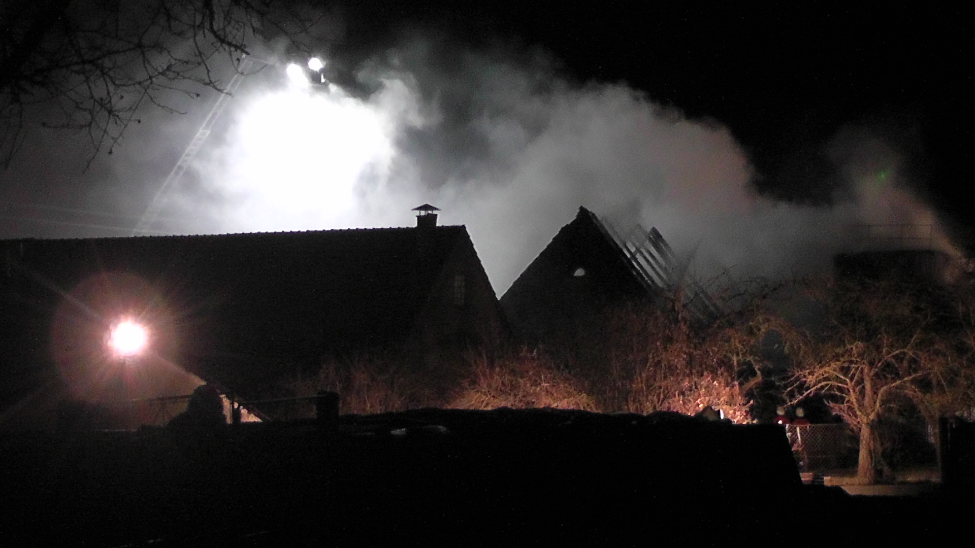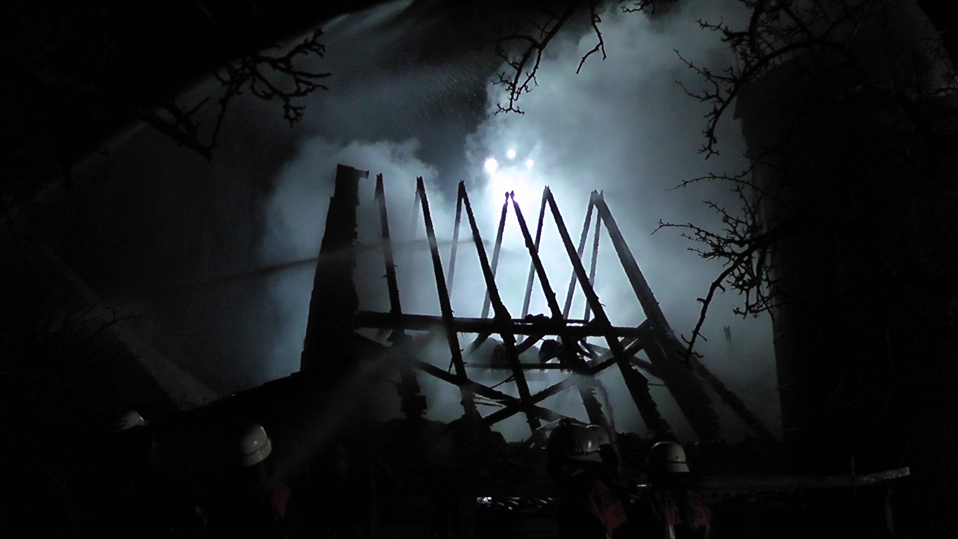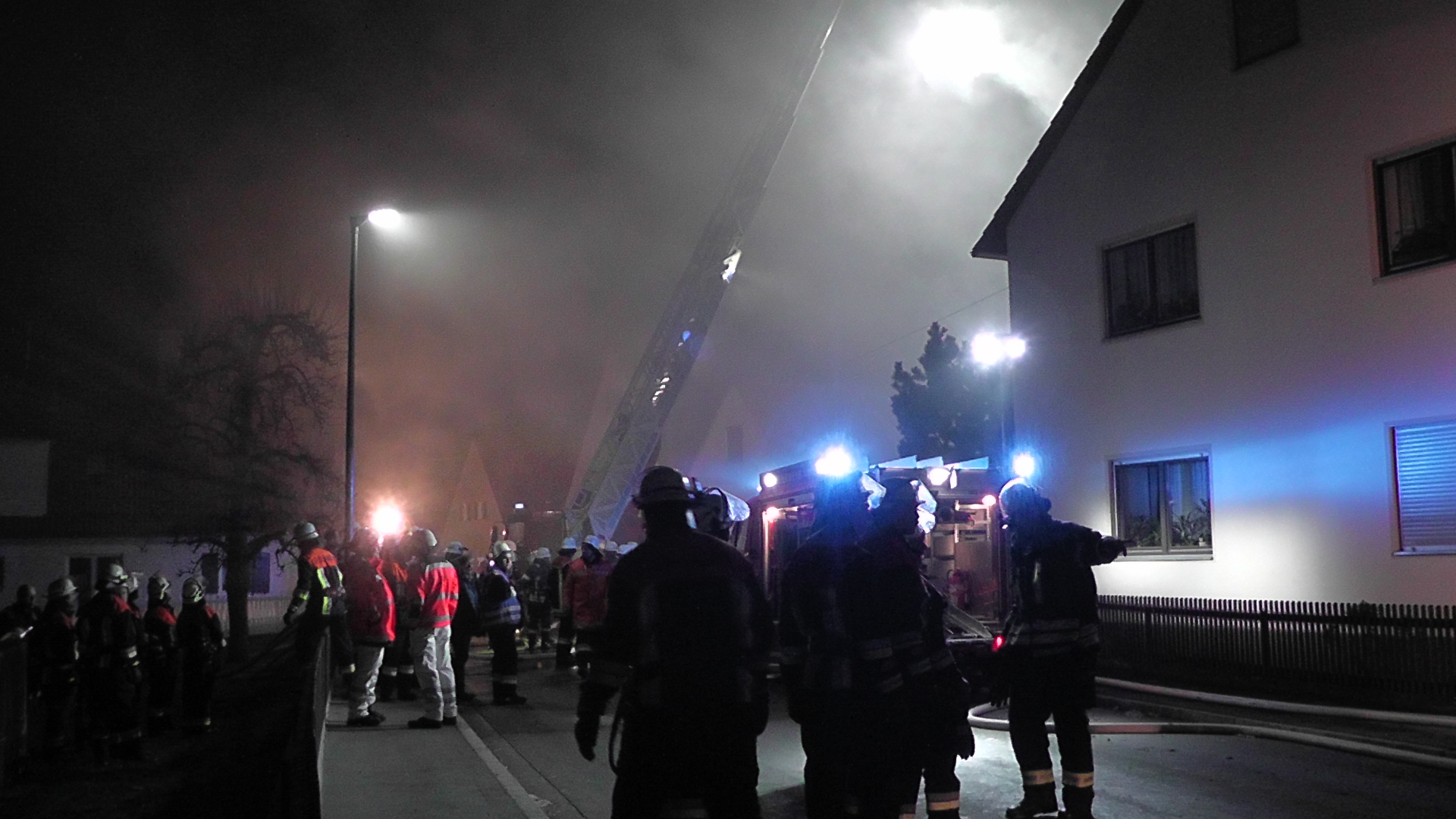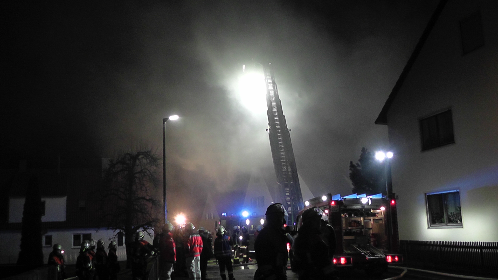Am 09.02.19, gegen 20:00 Uhr, bemerkten Anwohner eines landwirtschaftlichen Anwesens im Ortsteil Hürnheim ein Feuer im Bereich des Stadels. Innerhalb kurzer Zeit breitete sich der Brand auf den gesamten Stadelbereich sowie die Stallungen, in denen sich mehrere Rinder und Schweine befanden, aus. Über 170 Feuerwehrkräfte aus dem Landkreis Donau-Ries bekämpften über Stunden hinweg den Großbrand.