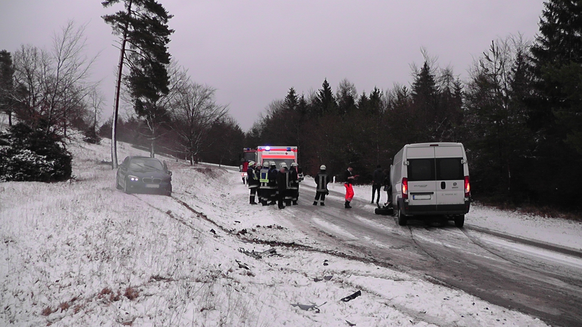 Am 11.02.2019, gegen 10.30 Uhr, befuhr ein 25-jähriger Mann mit seinem Pkw die Ortsverbindungsstraße von Schaffhausen her kommend in Richtung Harburg. Ca. 400 m nach der im Wald befindlichen Kreuzung geriet er in einer Rechtskurve aufgrund Schneeglätte und nicht angepasster Geschwindigkeit nach links auf die Gegenfahrbahn. Dort kam es zum Zusammenstoß mit einem entgegen kommenden Pkw, der von einer 52-jährigen Frau gesteuert wurde. Beide Fahrzeugführer erlitten leichte bis mittelschwere Verletzungen und wurden ins Krankenhaus eingeliefert. Es entstand ein Sachschaden in Höhe von ca. 18.000 Euro; beide Fahrzeuge mussten abgeschleppt werden. Die Feuerwehr Harburg war mit knapp 20 Mann vor Ort.