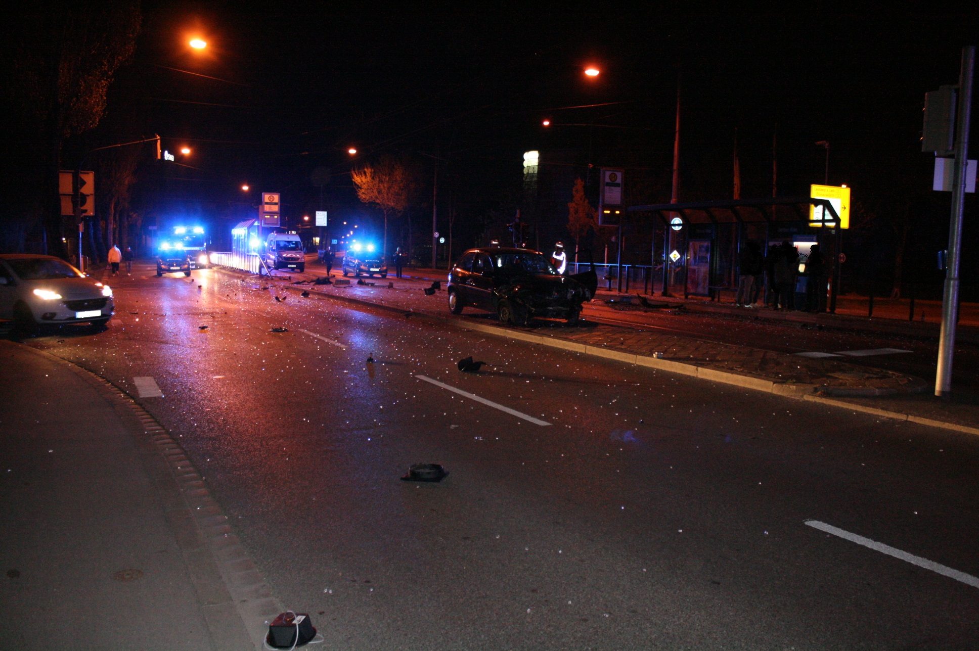 Aufgrund des Schadensbildes und der festgestellten Bremsspuren ist von einer deutlichen überhöhten Geschwindigkeit auszugehen. An dem Corsa wurde die Fahrzeugfront komplett eingedrückt und auch die Fahrzeugseiten beschädigt, der umgefahrene Ampelmast und die beschädigte Haltestellenabgrenzung dürften auch mit mehreren tausend Euro zu Buche schlagen, so dass sich der Gesamtschaden im unteren bis mittleren fünfstelligen Eurobereich bewegen dürfte.