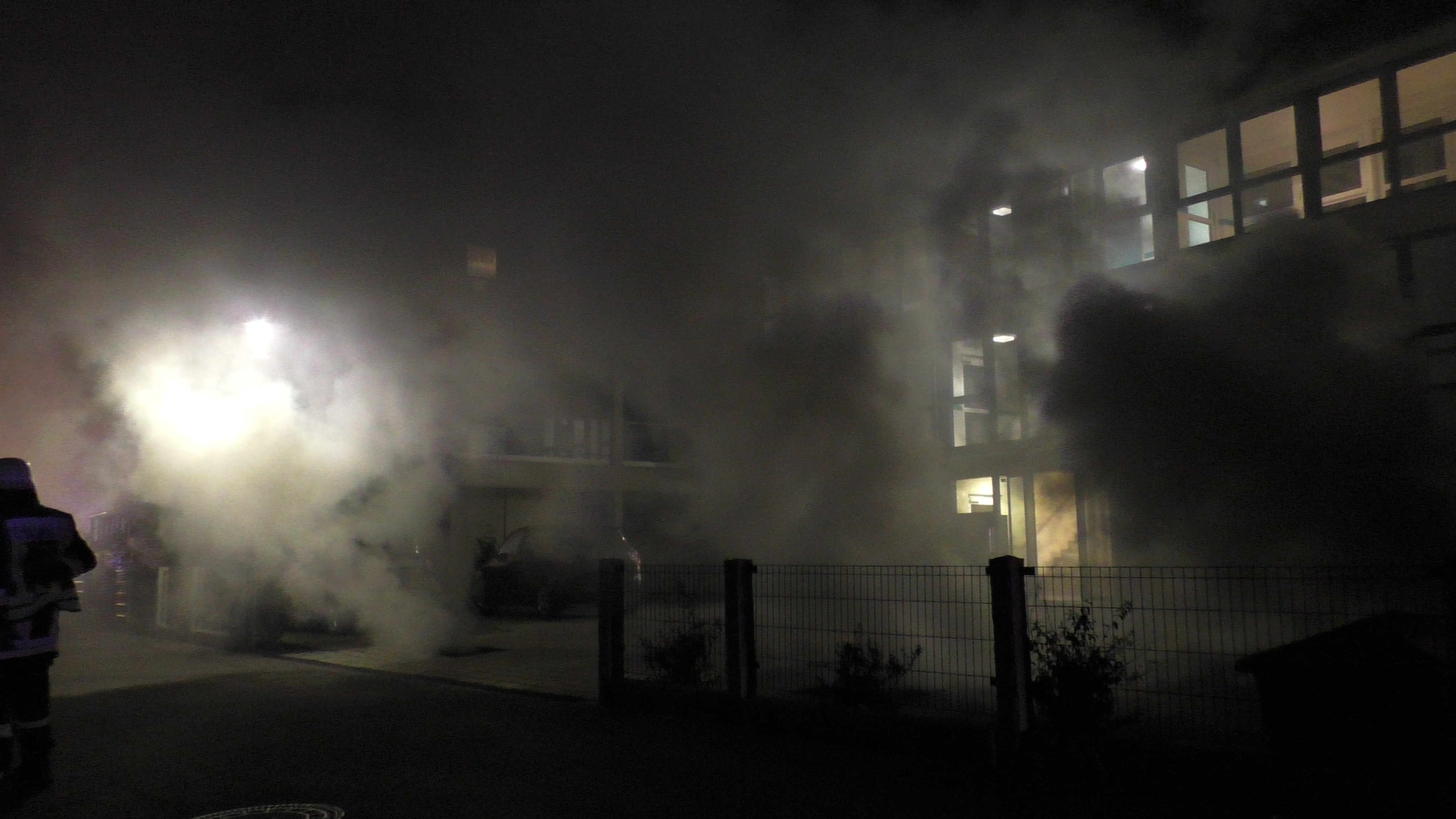 Am Mittwoch, den 18.09.2019 gegen 21:50 Uhr wurde der Integrierten Leitstelle der Feuerwehr eine starke Rauchentwicklung aus einer Tiefgarage gemeldet. Bei Eintreffen der Einsatzkräfte drang starker Rauch aus sämtlichen Lüftungsschächten der Tiefgarage unterhalb des Wohnkomplex Maria-Holl-Straße 6 und 8. Zur Brandbekämpfung war die Feuerwehr mit schwerem Atemschutz in der Tiefgarage bis die Löscharbeiten aufgrund Einsturzgefahr eingeschränkt werden musste.