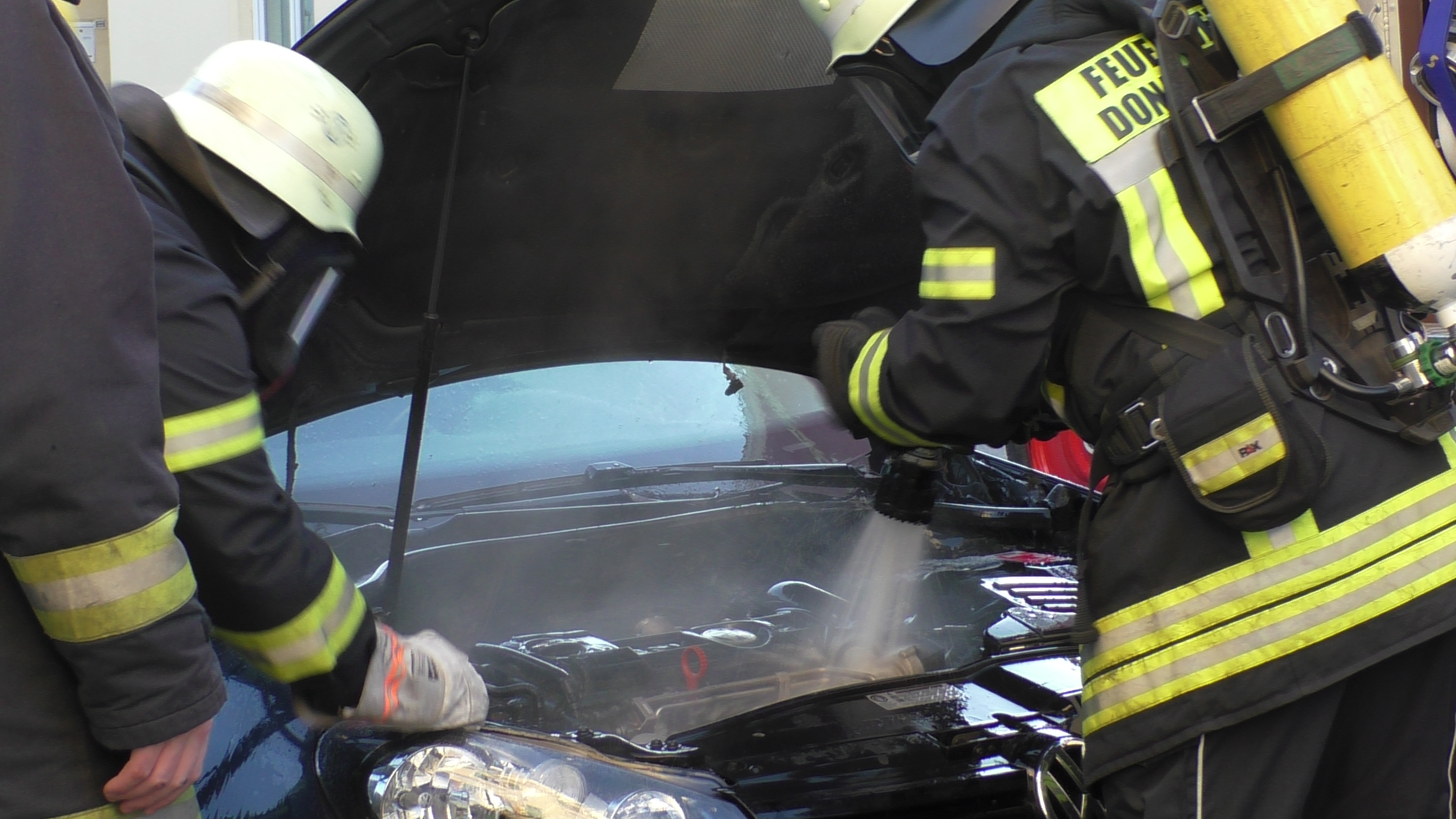 Eine Streife der Polizeiinspektion Donauwörth, die nur vier Minuten später eintraf, konnte die sich bereits ausbreitenden Flammen mittels Feuerlöscher aus dem Dienst-Pkw komplett ablöschen. Vorsorglich wurde die FFW Donauwörth ebenfalls zur Einsatzörtlichkeit gerufen. Diese traf mit acht Einsatzkräften ein. Brandursache war ersten Erkenntnissen zufolge ein technischer Defekt im Bereich der Batterie. Das Ehepaar blieb glücklicherweise unverletzt.