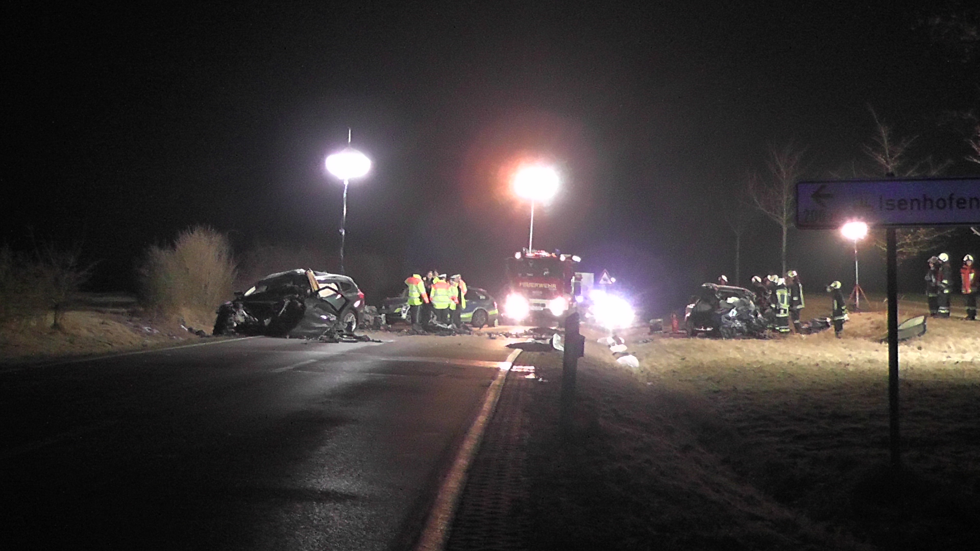 Am Samstag gegen 20:20 Uhr, befuhr ein 27-jähriger die Staatsstraße von Rohrenfels in Richtung Ehekirchen. Aus bislang unbekannter Ursache kam es auf Höhe Isenhofen zum Frontalzusammenstoß mit einem entgegenkommenden Pkw eines 20-jährigen. Beide Fahrzeugführer wurden durch den Zusammenstoß sofort getötet. Der 27-jährige Beifahrer des Unfallverursachers erlitt lebensgefährliche Verletzungen, der 19-jährige Beifahrer des entgegenkommenden Fahrzeuges erlitt schwere Verletzungen. Beide Beifahrer kamen umgehend zur Behandlung in Kliniken. Die Feuerwehren Ehekirchen und Neuburg waren an der Unfallstelle im Einsatz. Bis ca. 01:00 Uhr war die ST2035 an der Unfallstelle komplett gesperrt.