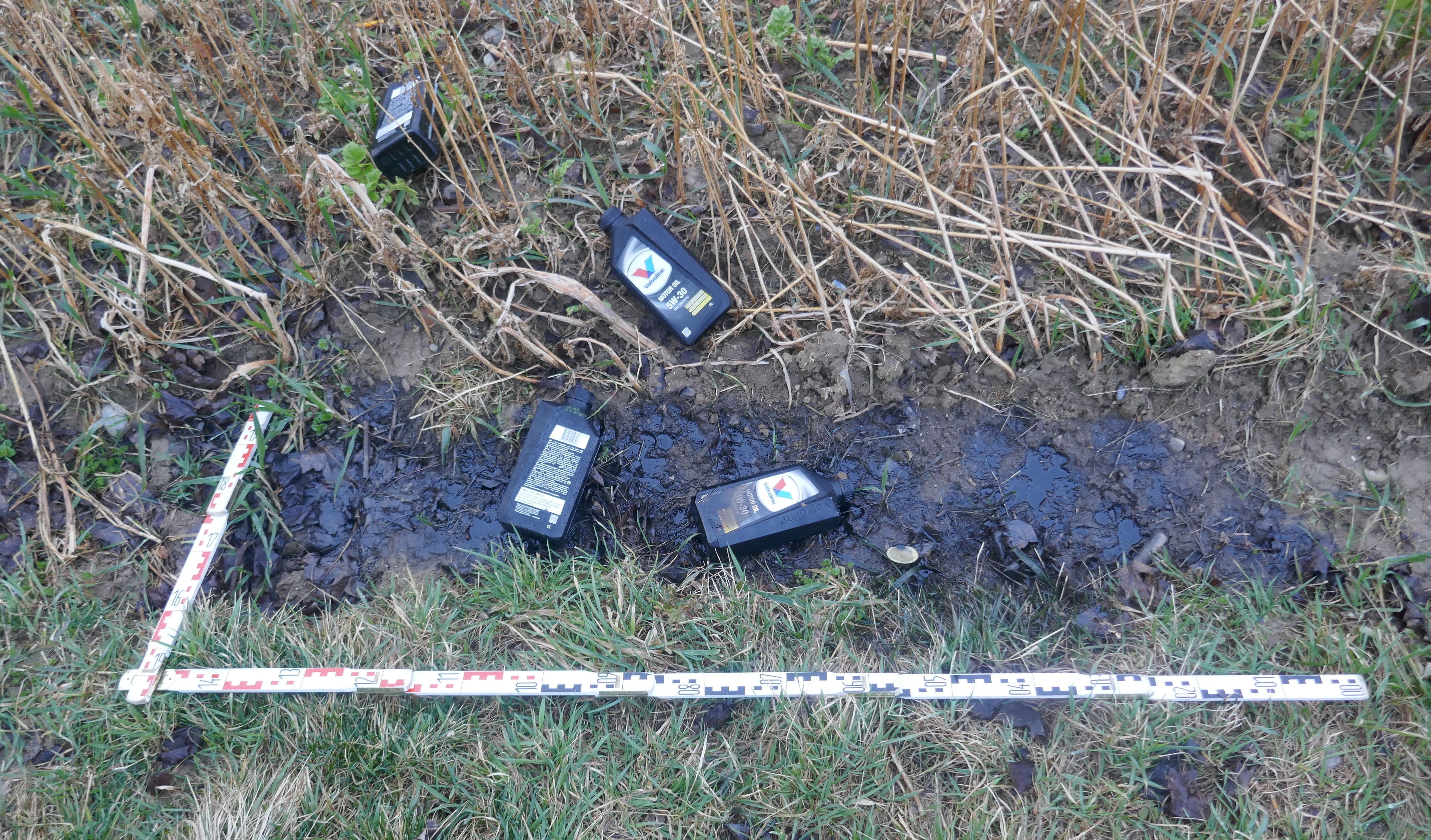 Umweltverschmutzung - Unbekannter hinterlässt 4 Flaschen Motoröl
