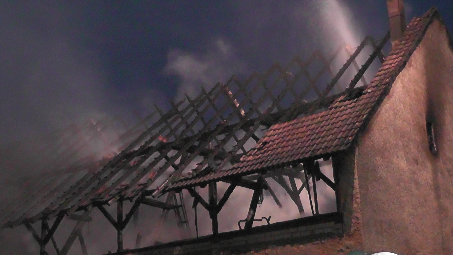 Heute Morgen, gegen 02:45 Uhr, wurde die Polizeiinspektion Nördlingen von einem Wohnhausbrand in Mönchsdeggingen, in der Albstraße, in Kenntnis gesetzt. Als dann eine Polizeistreife eintraf, brannte der Dachstuhl des Anwesens vollständig aus. Die Freiwilligen Feuerwehren Nördlingen, Möttingen, Merzingen, Schaffhausen, Balgheim, Hohenaltheim, Appetshofen, Harburg und Donauwörth, welche mit insgesamt 140 Mann vor Ort waren, konnten den Brand löschen. Mit vor Ort waren der Rettungsdienst und das THW Nördlingen. Der Sachschaden wird auf ca. 100.000,- Euro geschätzt. Die Brandursache ist bis dato unbekannt. Die Ermittlungen diesbezüglich werden von der Kriminalpolizeiinspektion Dillingen geführt.