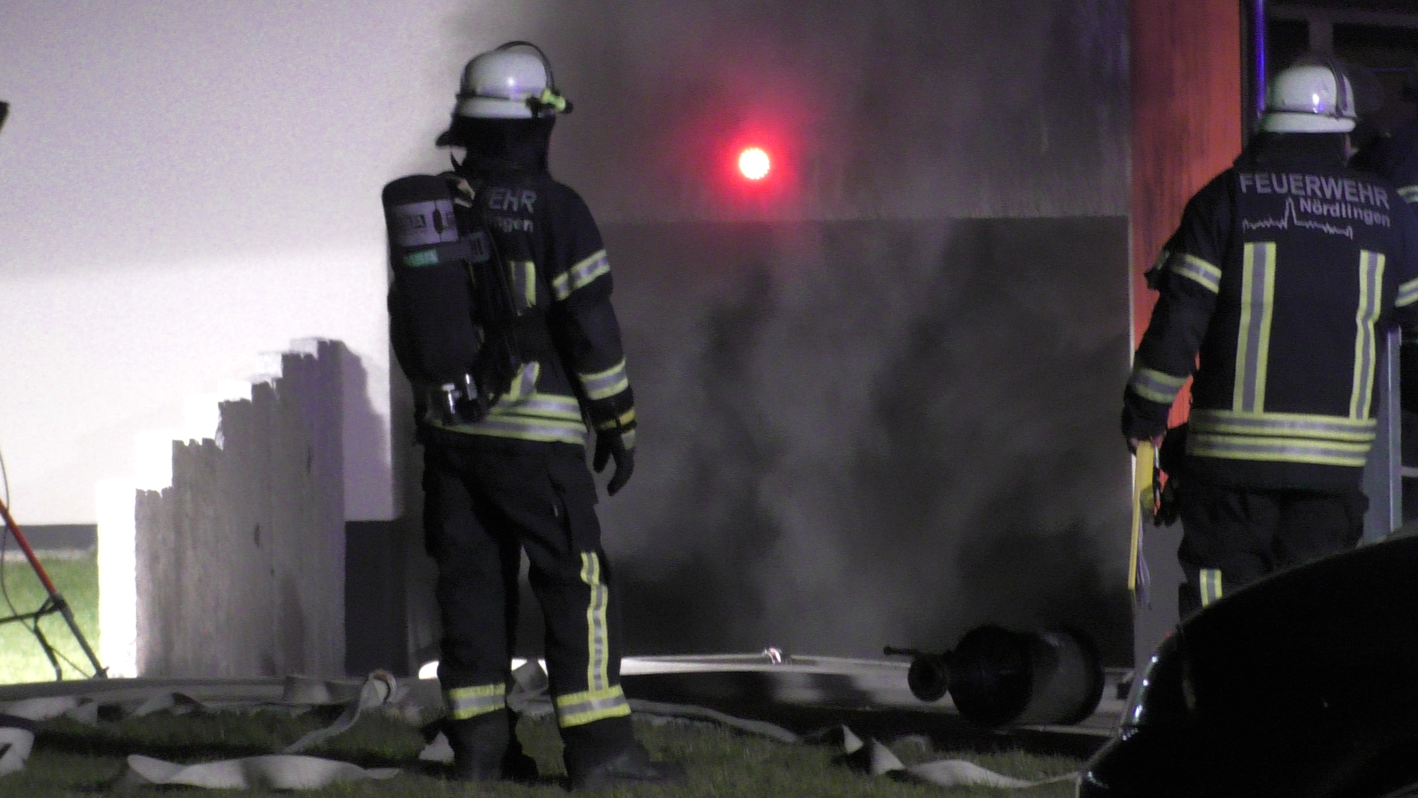 Bei dem Brand zogen sich 3 Einsatzkräfte sowie ein Anwohner eine leichte Rauchgasintoxikation zu. Diese kamen zur weiteren Versorgung ins KH Nördlingen.