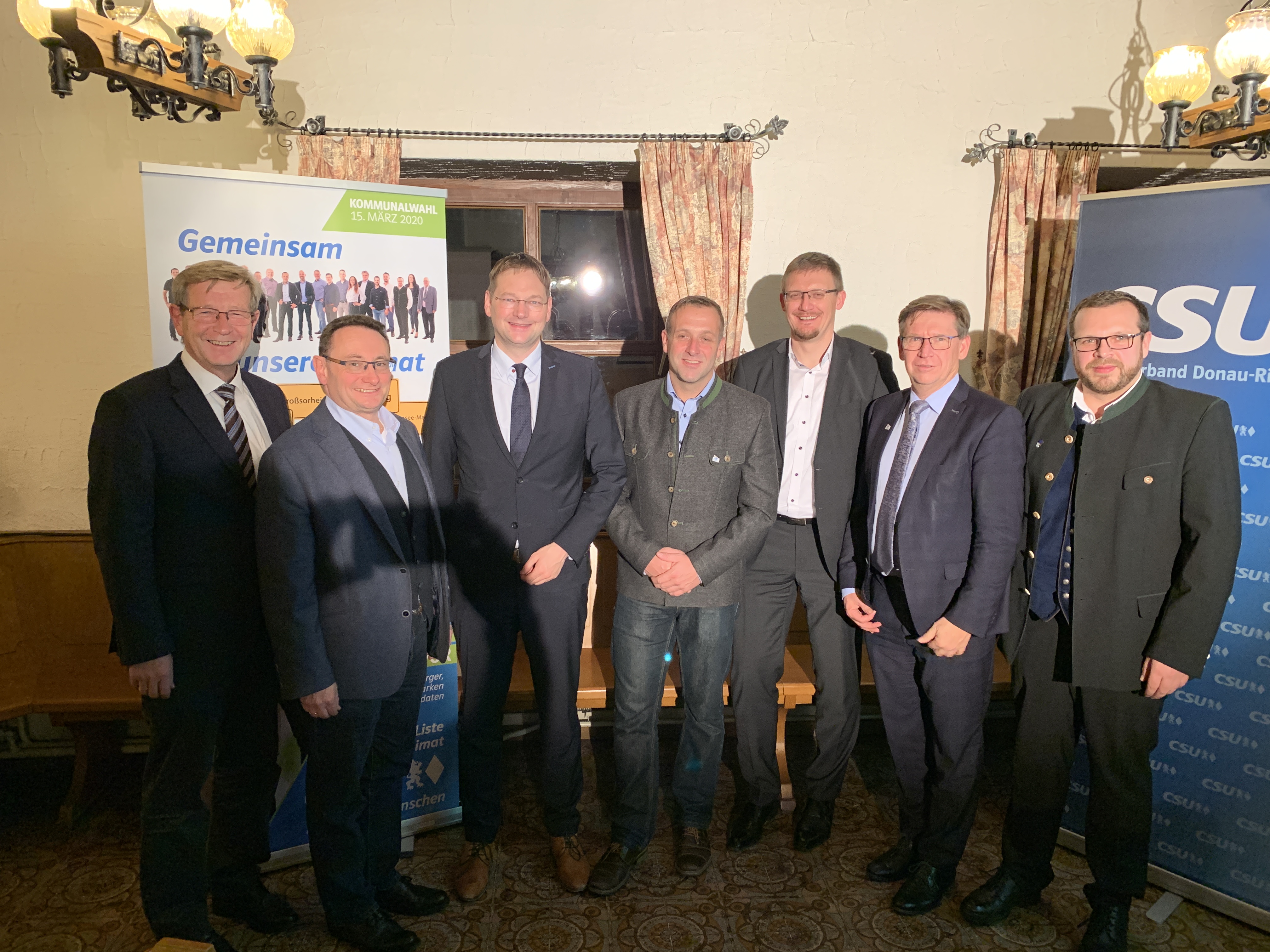Anlass des Besuches war ein vom Harburger Bürgermeisterkandidaten, Bernd Spielberger (CSU Harburg) und dem Bürgermeisterkandidaten aus Münster, Jürgen Raab (Vorsitzender der Kommunalpolitischen Vereinigung Donau-Ries), organisierter „Kommunalpolitischer Dialog“. Dieser Einladung sind viele Bürgermeister- und Kreistagskandidaten aus dem Landkreis gefolgt. Als Gäste durften auch Vizelandrat Reinhold Bittner und Bezirksrat Peter Schiele begrüßt werden.