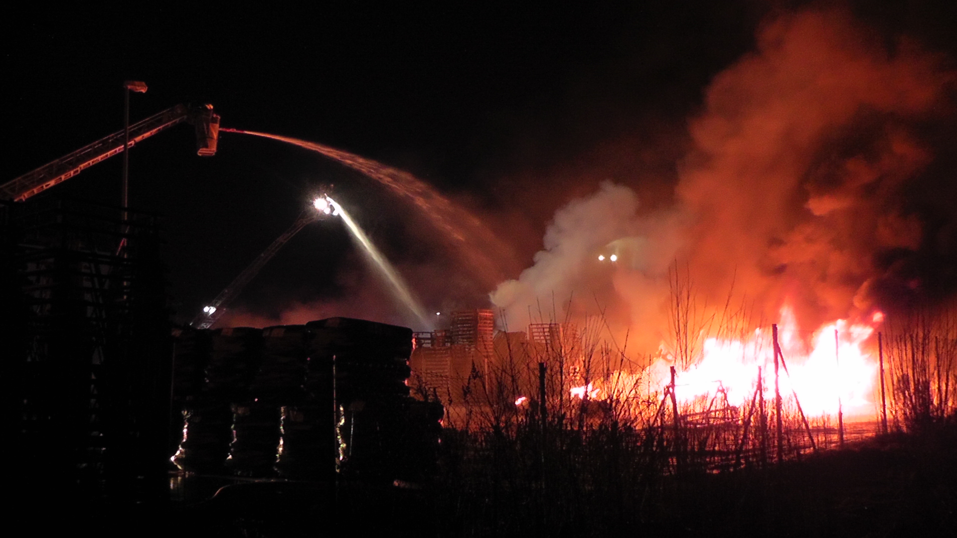 Um kurz nach Mitternacht wurde auf dem Gelände eines Unternehmens für Kunststoffe und Folien in der Hanns-Martin-Schleyer-Straße der Brand mehrere Euro-Paletten gemeldet. Obwohl die Feuerwehr Lauingen sofort mit Löscharbeiten begann, schlugen die Flammen auf eine nebenstehende Lagerhalle über. Diese geriet innerhalb kürzester Zeit in Vollbrand. Auf Grund der Brandgröße wurden umliegende Feuerwehren hinzugerufen.