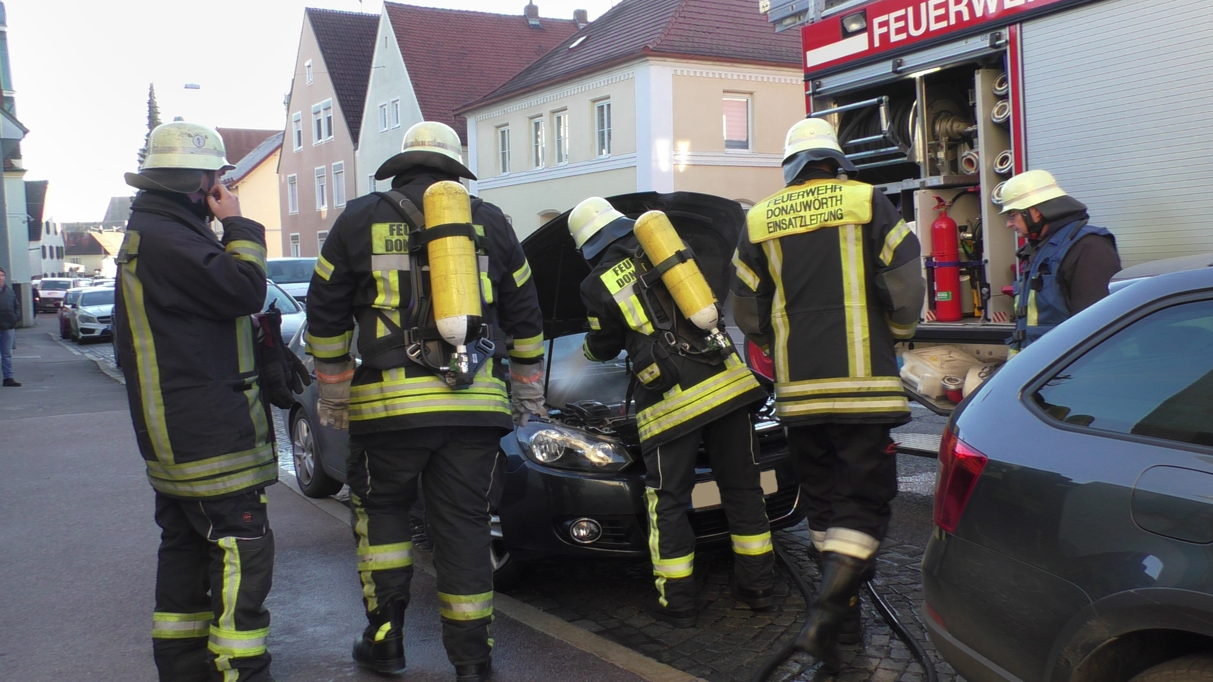 Eine Streife der Polizeiinspektion Donauwörth, die nur vier Minuten später eintraf, konnte die sich bereits ausbreitenden Flammen mittels Feuerlöscher aus dem Dienst-Pkw komplett ablöschen. Vorsorglich wurde die FFW Donauwörth ebenfalls zur Einsatzörtlichkeit gerufen. Diese traf mit acht Einsatzkräften ein. Brandursache war ersten Erkenntnissen zufolge ein technischer Defekt im Bereich der Batterie. Das Ehepaar blieb glücklicherweise unverletzt.